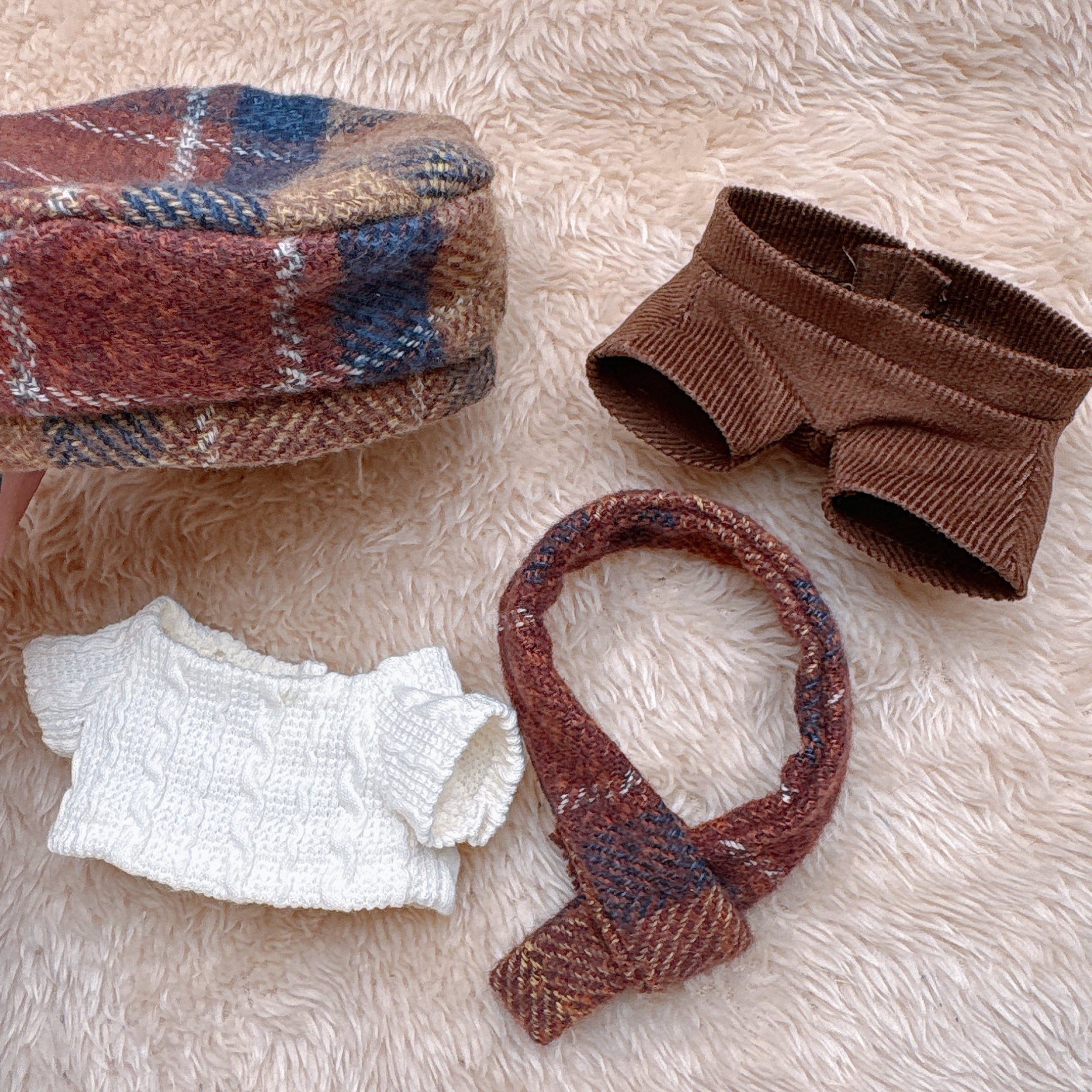 【10cm15cmぬい用】ベレー帽、トップス、パンツ、マフラーの4点セット